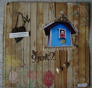 Cardandscrap ønsker vinger på denne utfordringen. Her er mitt bidrag. Mitt barnebarn kikker ut av vinduet på en lekehytte. Ideen med gjøkuret kom bare av seg selv!!